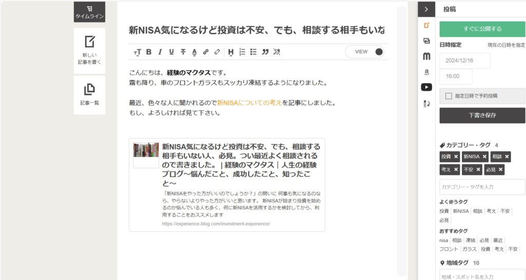 ムラゴンでの記事はこちら⇒新NISA気になるけど投資は不安、でも、相談する相手もいない人、必見。つい最近よく相談されるので書きました。 – 経験のマクタス|人生の経験ブログ〜悩んだこと、成功したこと、知ったこと〜