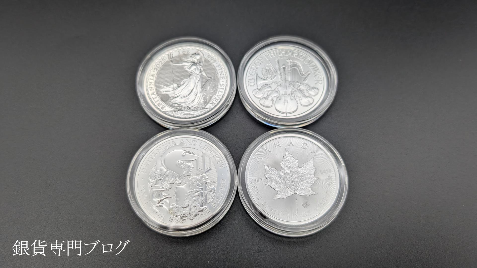 2025年ブリタニア銀貨、2017年ウィーン銀貨、2025年メイプル銀貨、2024年ブリタニア&リバティ銀貨をコインパレスで購入 月はじめの定期購入なのですが、ちょっと銀貨の値…